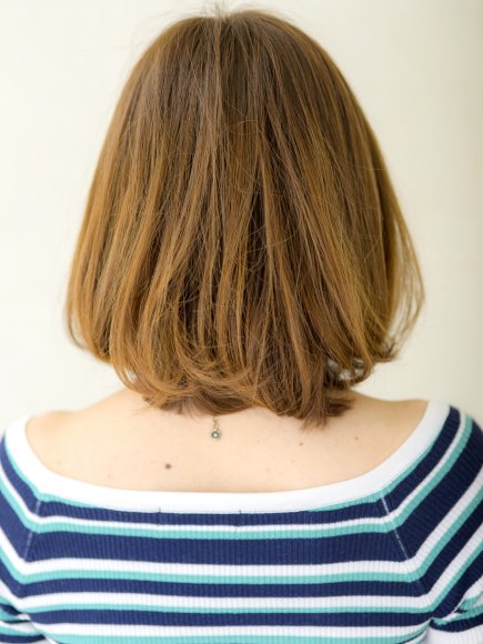 細めのハイライトをランダムに散りばめ、顔周りやハイライトのすぐ隣にローライトもポイントで入れてます。そのままでも立体感が出て、巻いたりして動きを出すとまた違った表情が楽しめる、大人カジュアルなボブスタイルです☆