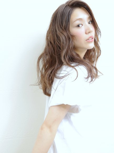 ラフに揺れ動くロングレイヤーをアイロンでランダムに巻き、ジェルをもみ込んでウェットに仕上げた、無造作だけど艶っぽいスタイルです。