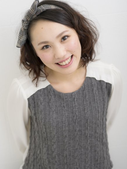ヘッドアクセサリーをつける時は前髪を少し出すと、フェミニンさが増します。パーマをしっかり崩してあげるのもスタイリングのコツです。