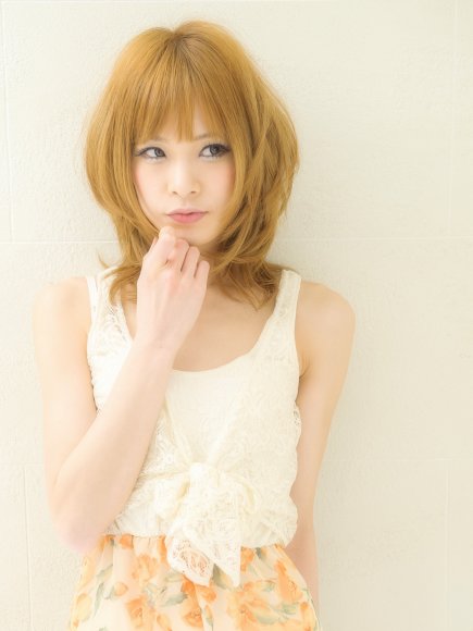 春夏に持ってこいのミディアムスタイル!!重さをとりのぞいて明るめのベージュカラーで動きをだしてます。顔周りの短い毛が小顔効果のポイントです