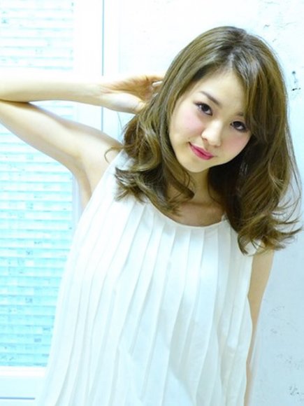 肩下のロブをアイロンでランダムに巻き、毛先を無造作に遊ばせてます。カラーは今年注目のブルージュ。